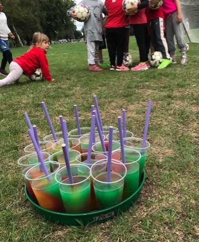 Efter en god omgang fodboldtræning var der slush ice med lilla sugerør, lilla slik og vindruer!