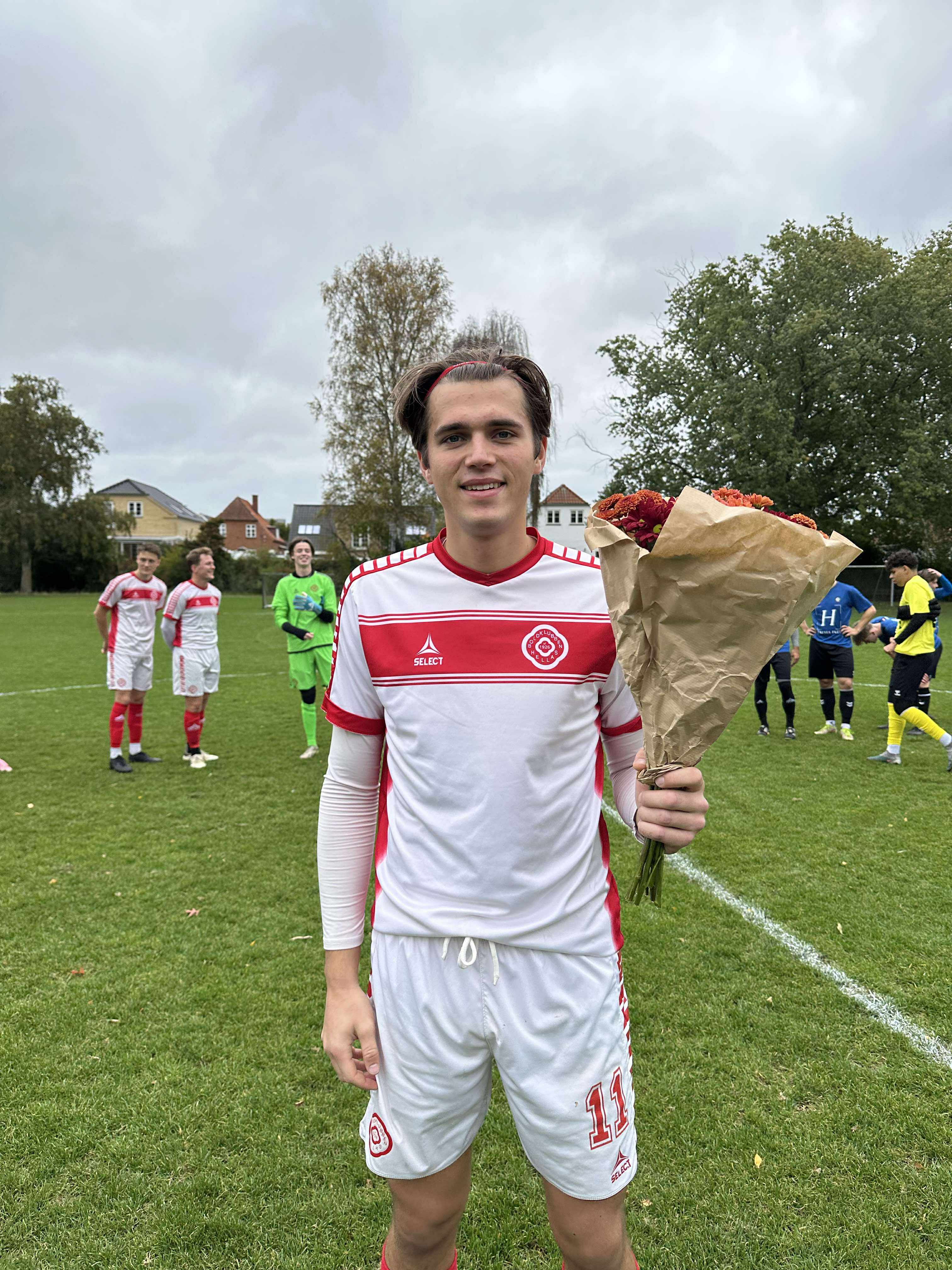 I sidste weekend fik Felix Monrad blomster for hans 100 kampe for 1. herresenior.